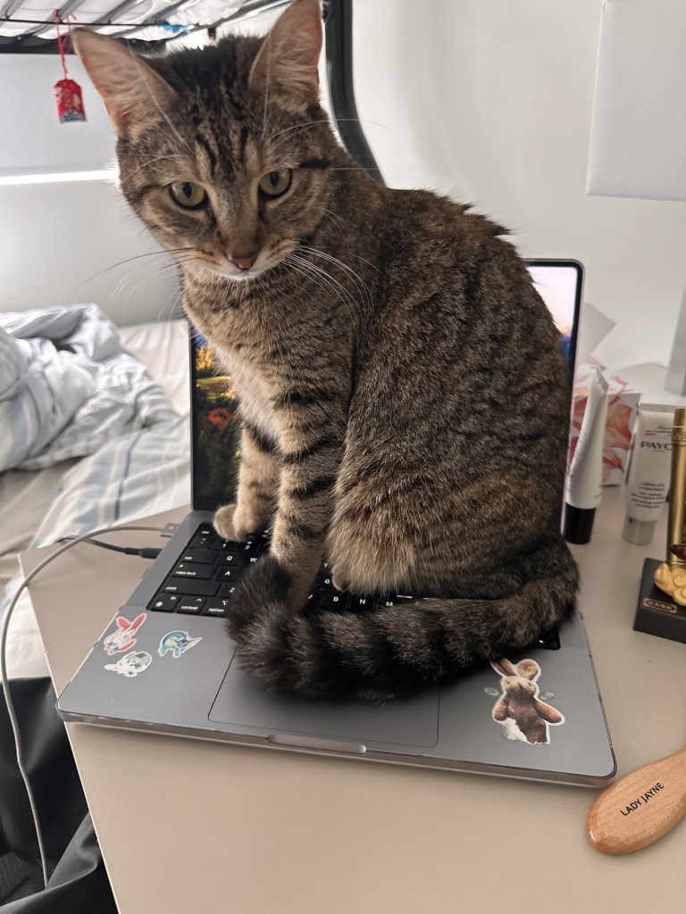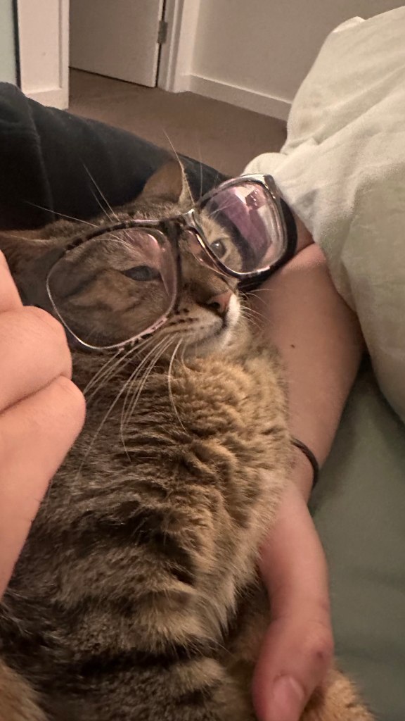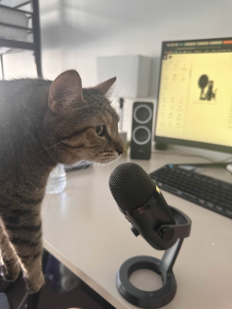 For this week of MusTech, James showed us how to capture live video and audio, including multi-cam filming and lighting. He first ran the class through the various equipment he brought, some from his personal collections and others provided by the university. These included a mix of Fuji, Canon, and DJI cameras, as well as Rode audio mics. After explaining the benefits and uses of each camera, he then gave us the rest of the lesson to run free and create our own video with only a few parameters. We had to have at least five group members, two camera operators, one gaffer (lighting technician), one sound mixer, and finally a director. I was Camera Man 1, in charge of shooting on the DJI Osmo Pocket 3, which we mainly used for POV and tracking shots. In James’ demonstration, he showed us how gyro technology in the Osmo allowed for stable face tracking and smoother footage. In my demonstration, I show how Delilah can also achieve a similar result with the use of a laser and my annoying roommate; see below for proof.