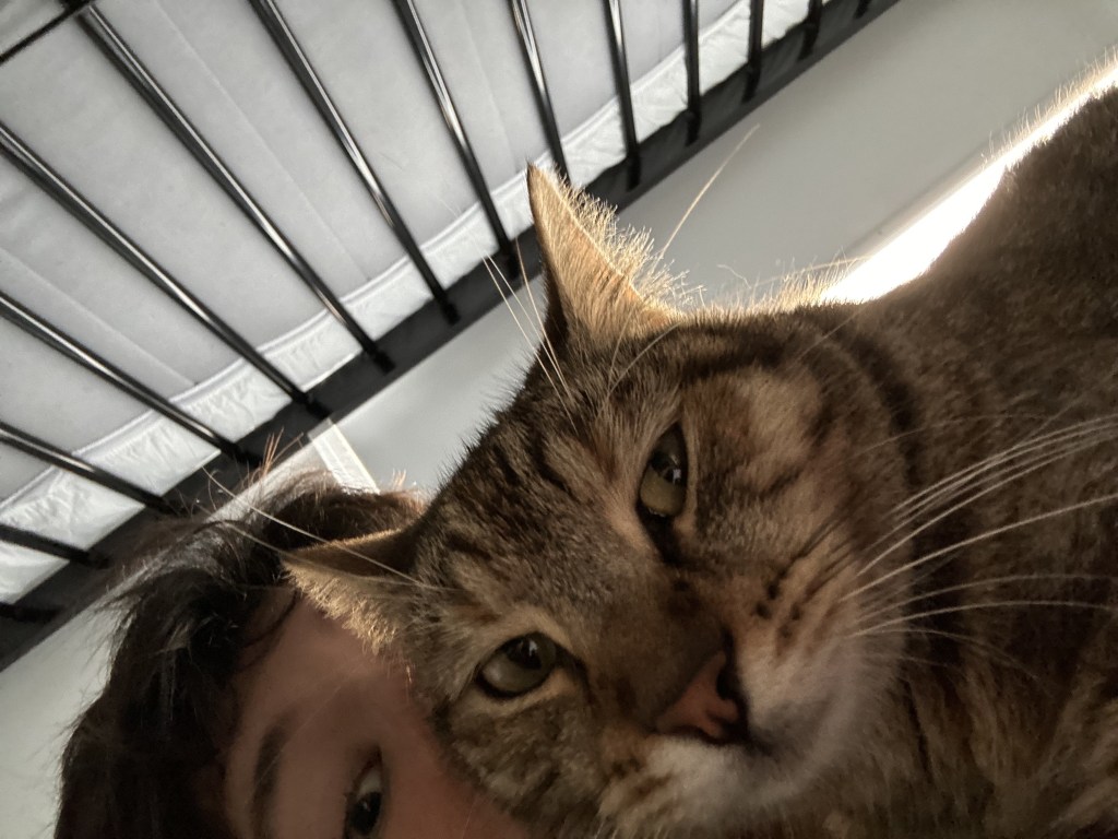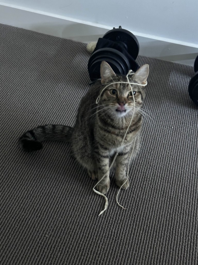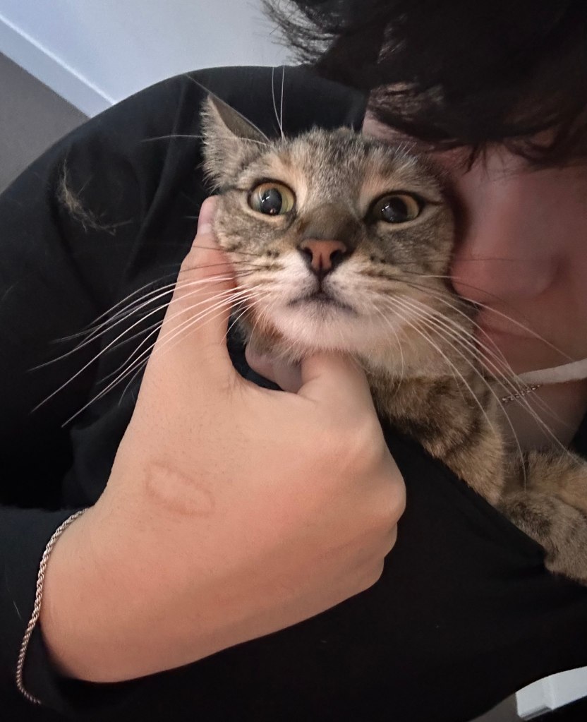 Every now and then Delilah has a involuntary shower and she comes out looking like a wet rat then proceeds to “clean” herself enjoy.