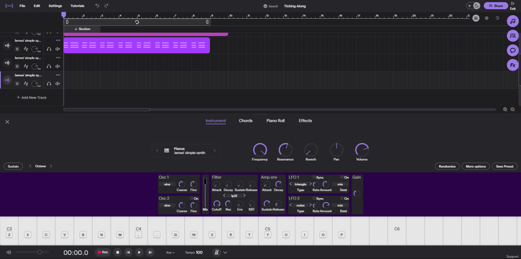 Finally for the rest of the lessons we were encouraged to create some music using the digital synth, seeing how the different types of wave such as sine, square, saw affect the sound.